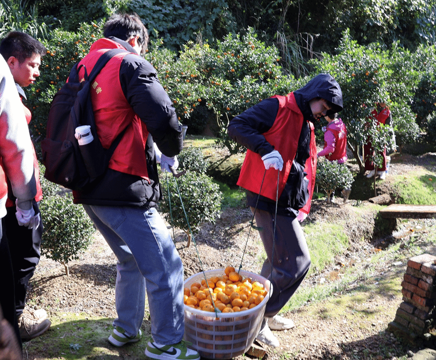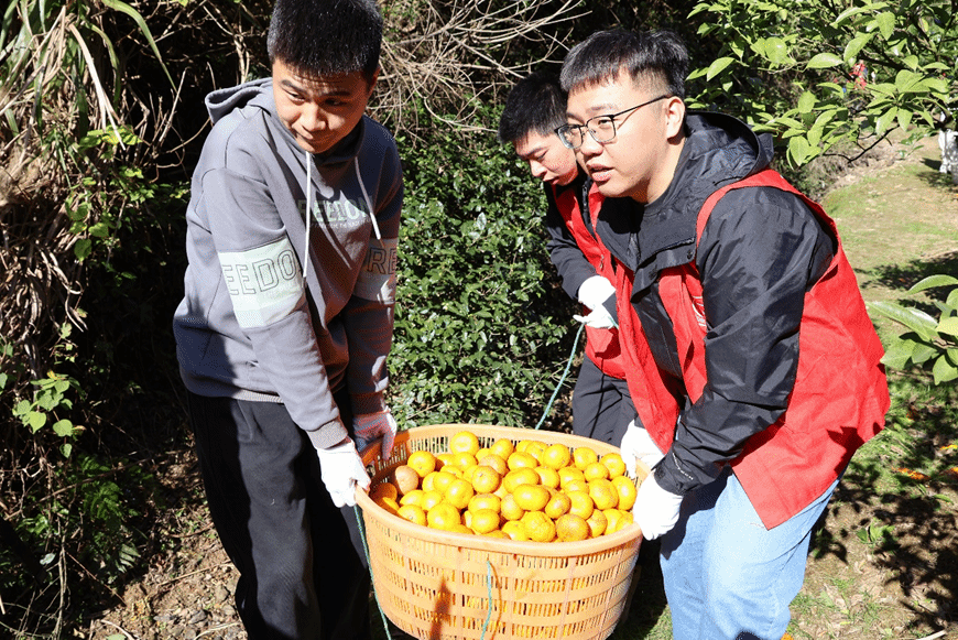 橘园中,党员们熟练地攀梯、剪枝、采摘、装筐,不到半天时间,就将一筐筐饱满的橘子搬到地头,满载的笑容仿佛也将丰收的喜悦带到了郑阿姨的心中。“非常感谢这些孩子们,他们让我们感受到了社会大家庭的温暖!”郑阿姨感激地说道。