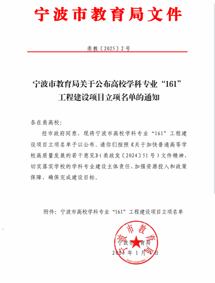 宁波市教育局对专业建设采用“预算引导、节点评估、绩效认定”的办法进行管理。立项专业将进一步加强内涵建设,通过承担教学改革,深化产教融合,大力开展专业人才社会培训、科技服务与推广、科研成果落地转化等实现专业能力的提升,不断提高专业的社会知名度、生源质量和就业质量。