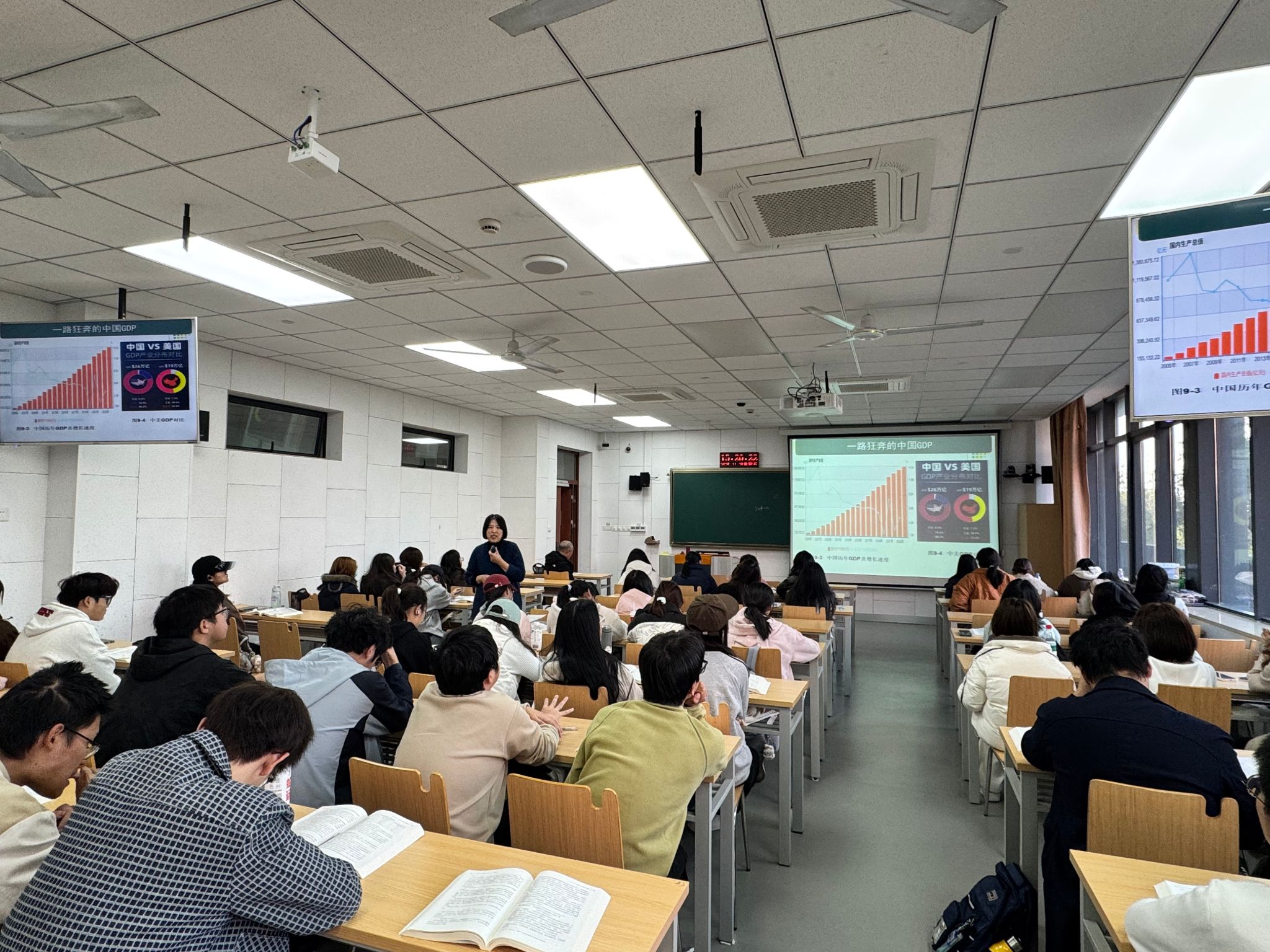 高晓红老师通过通过系统讲解宏观经济基本指标的概念和内涵,引导学生掌握宏观经济各项基本指标的内涵,并能进行正确核算。高老师通过宏观经济数据比较分析,揭示我国经济实践取得的巨大成就和现实问题,培养学生使命感。旁听教师普遍认为高老师备课充分,语言组织流畅,内容循循善诱,课堂互动良好,思政元素融入得当。