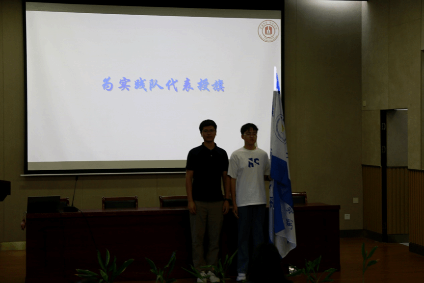 授旗仪式环节,房浩霖老师为实践队代表授旗,旗帜飘扬,象征着责任与使命的传递,这不仅仅是一面旗帜,更是学校和社会对实践队员的期望与信任。