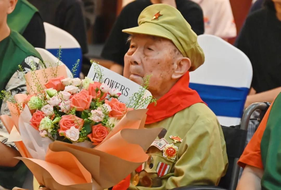 缅怀仪式后,举行了爱国主义教育座谈会。本次宣讲活动特邀了参加过抗日战争、解放战争、抗美援朝的江春太老兵亲临现场,以102岁高龄担任主讲人。江春太老兵耳聪目明、音如洪钟,讲述了抗战往事,同在场人员分享他宝贵的烽火回忆。江春太表示,看到祖国日益富强、人民幸福安康,是他最为欣慰之事,并希望能通过自己的经历,激励后人不忘历史,珍惜当下。