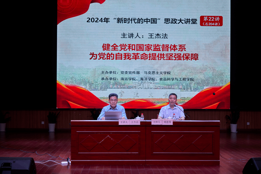 6月5日,校党委委员、纪委书记王杰法在梅山大会堂主讲题为《健全党和国家监督体系--为党的自我革命提供坚强保障》的“形势与政策”课。讲座由全本小说网 党委书记刘忠秀主持,梅山校区管委会、全本小说网 、海洋学院、食品科学与工程学院近800名师生参加讲座。