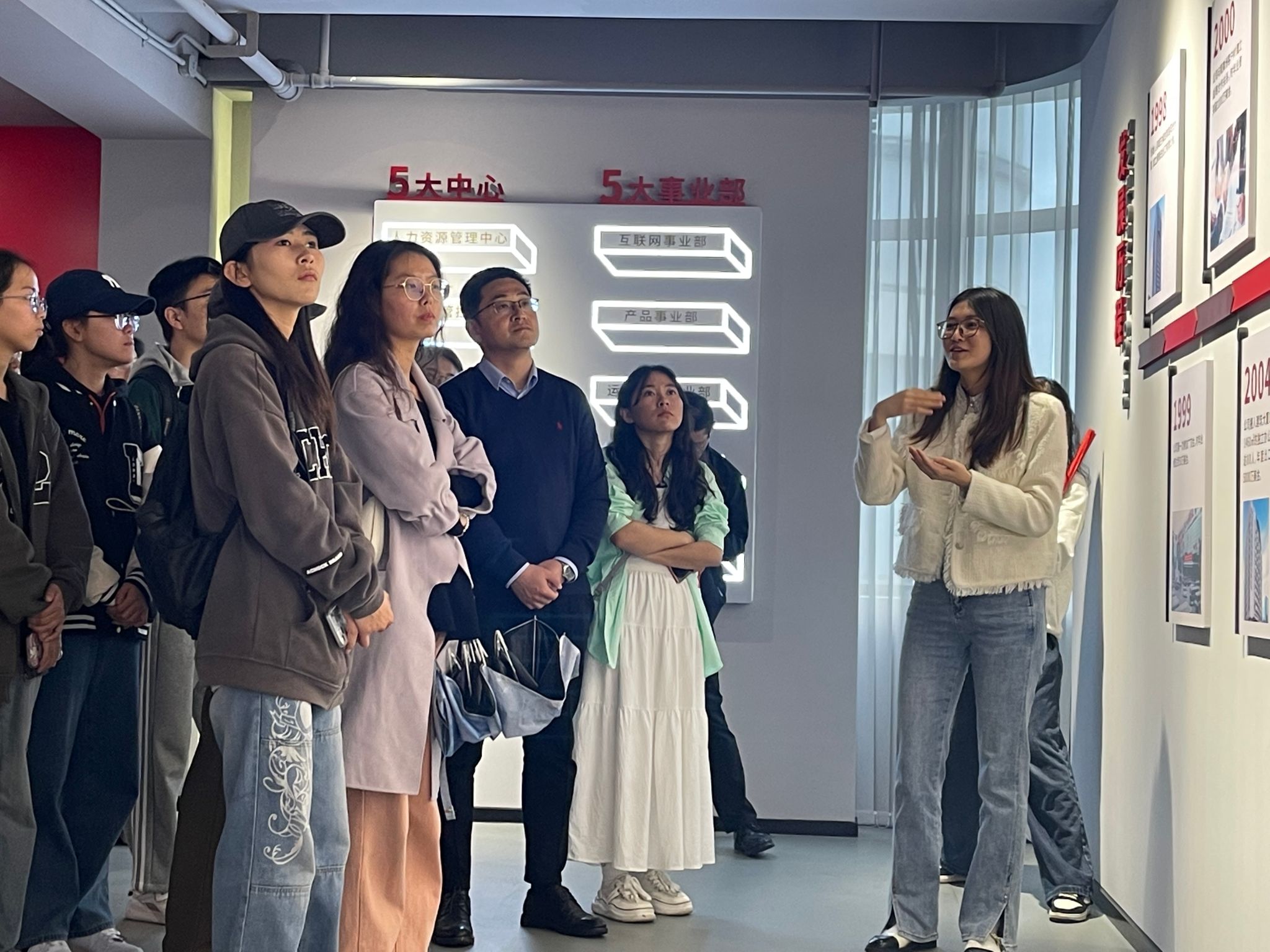 海运师生一行到达公司后,人力资源管理中心副总监刘大伟向来访的海运师生表示了热烈欢迎。随后,一行人在于悦经理的陪同下参观了豪雅企业展示厅,详细了解了豪雅集团的全球海外仓布局、智能化信息系统等情况。