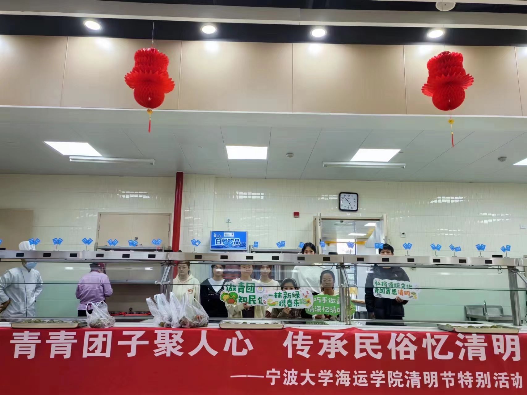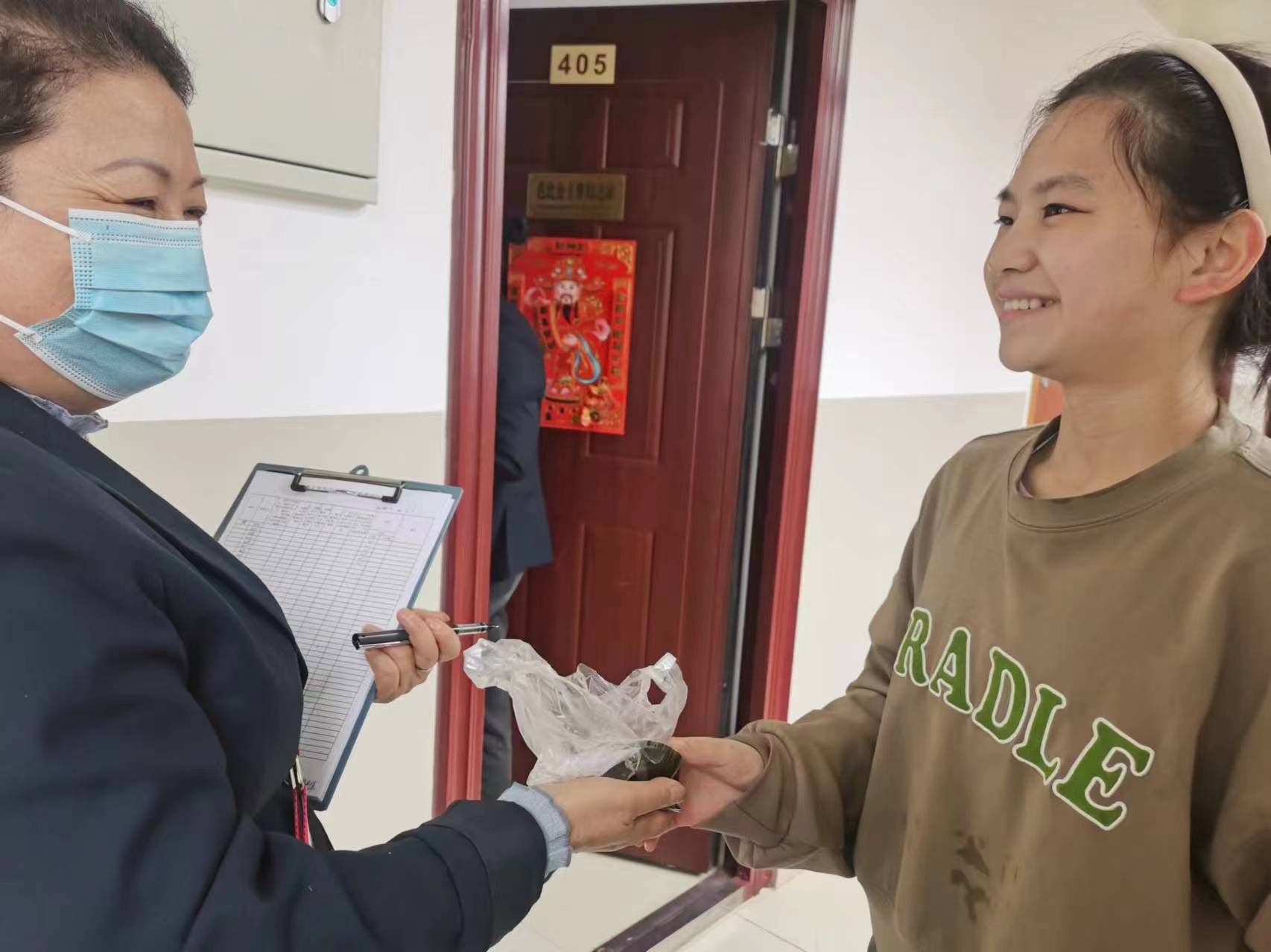 同学们还特别为寝室阿姨、保洁阿姨、门卫叔叔们送去了制作好的青团,感谢他们的辛勤付出,也期待将这份独特的“清明味道”与更多人分享。圆鼓鼓的团子里不仅是扎实的馅料,更是同学们满满的爱。