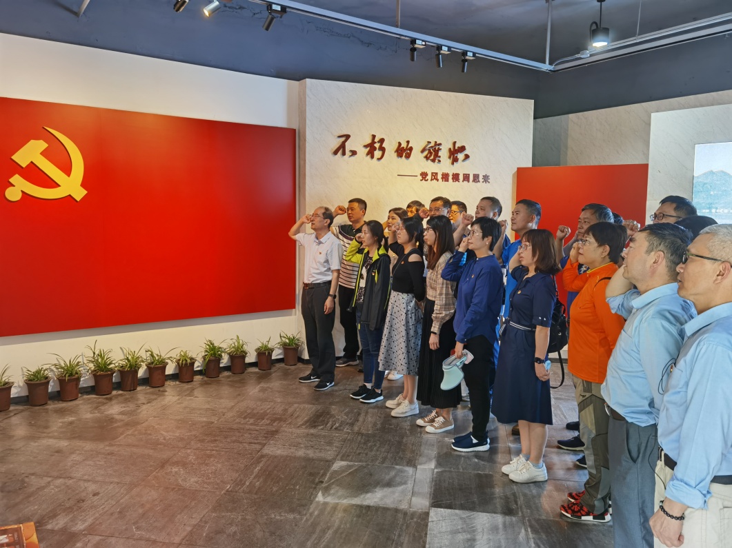 在周恩来祖居,通过“根脉系绍兴”“烽火千里行”“悠悠故乡情”等三个篇章的学习,了解周恩来总理家史及其为党和人民事业不懈奋斗的光辉历程,感受周恩来总理“鞠躬尽瘁一生为人民服务”崇高的品德,感悟周总理对故乡的浓厚亲情。参观结束,全体党员在鲜红的党旗下举手宣誓,重温入党誓词。