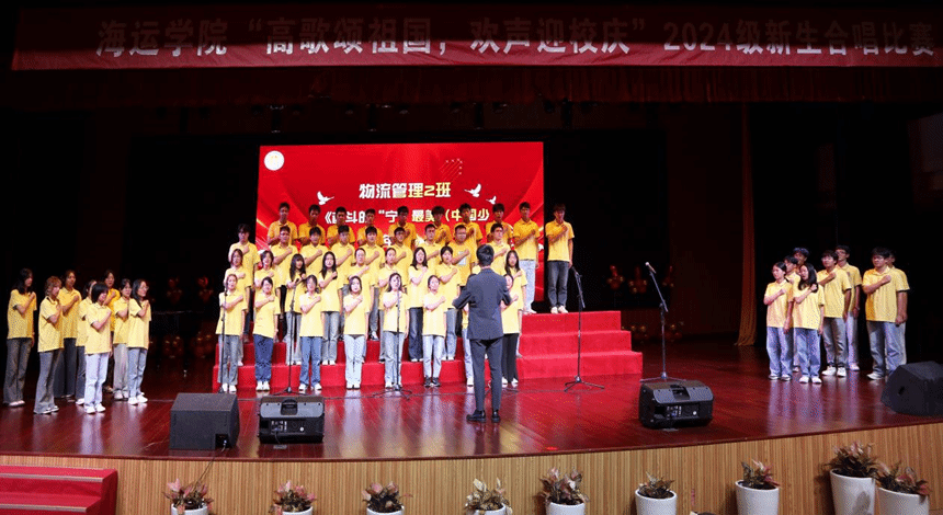 比赛分为三个篇章,每个篇章都由一堂微团课拉开序幕,三位同学讲述了中国发展、海运强国,强调了海运学子要不断超越自我,立时代潮头。比赛中,新生们身着统一的服装,以饱满的热情和昂扬的斗志,唱响了一曲曲动人的爱国之歌。
