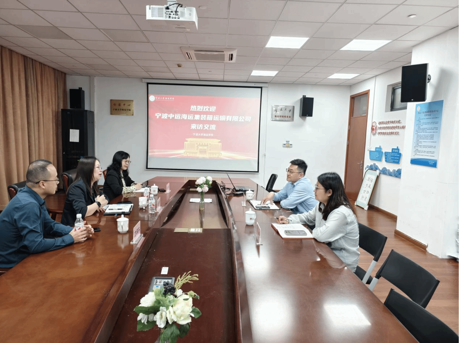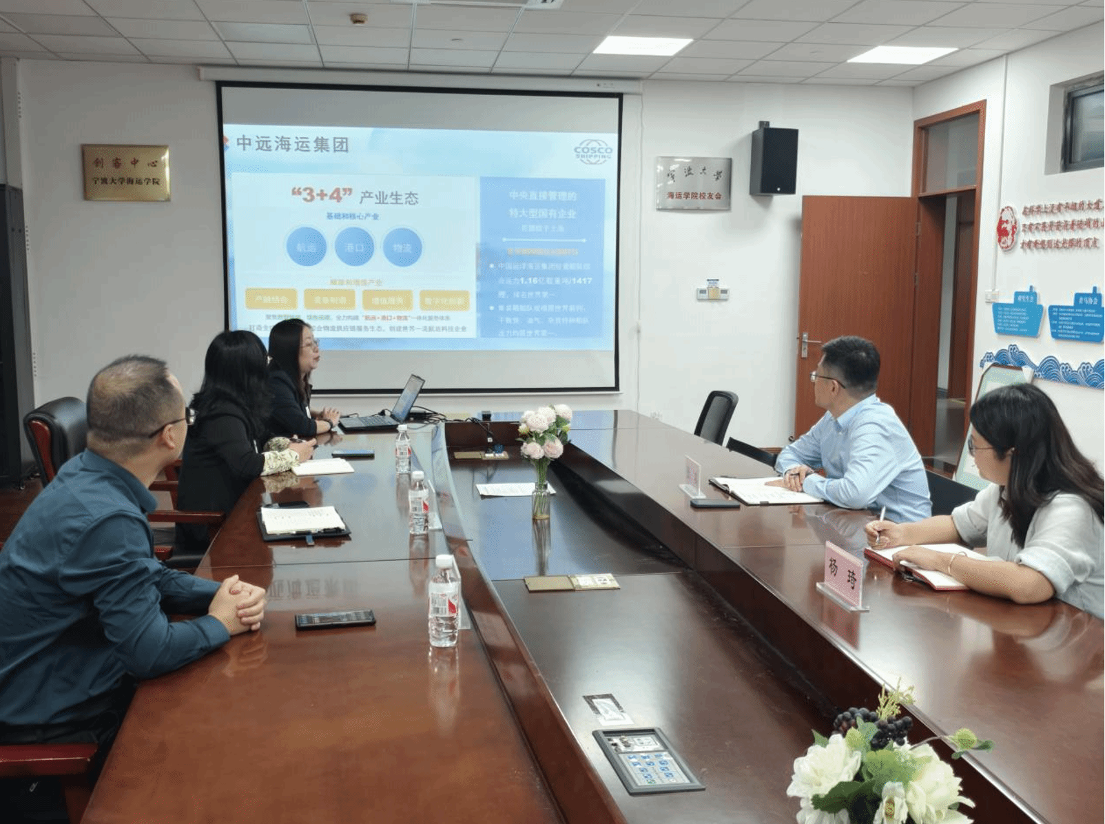 10月22日下午,宁波中远海运集装箱运输有限公司综合管理部总经理张雪琴、综合管理部组织/人力资源室副经理陈秀明,供应链物流部副总经理方李仁(2001级国际航运毕业生)一行到访全本小说网 ,全本小说网 党委副书记张宾、学工办主任杨琦参加交流会。