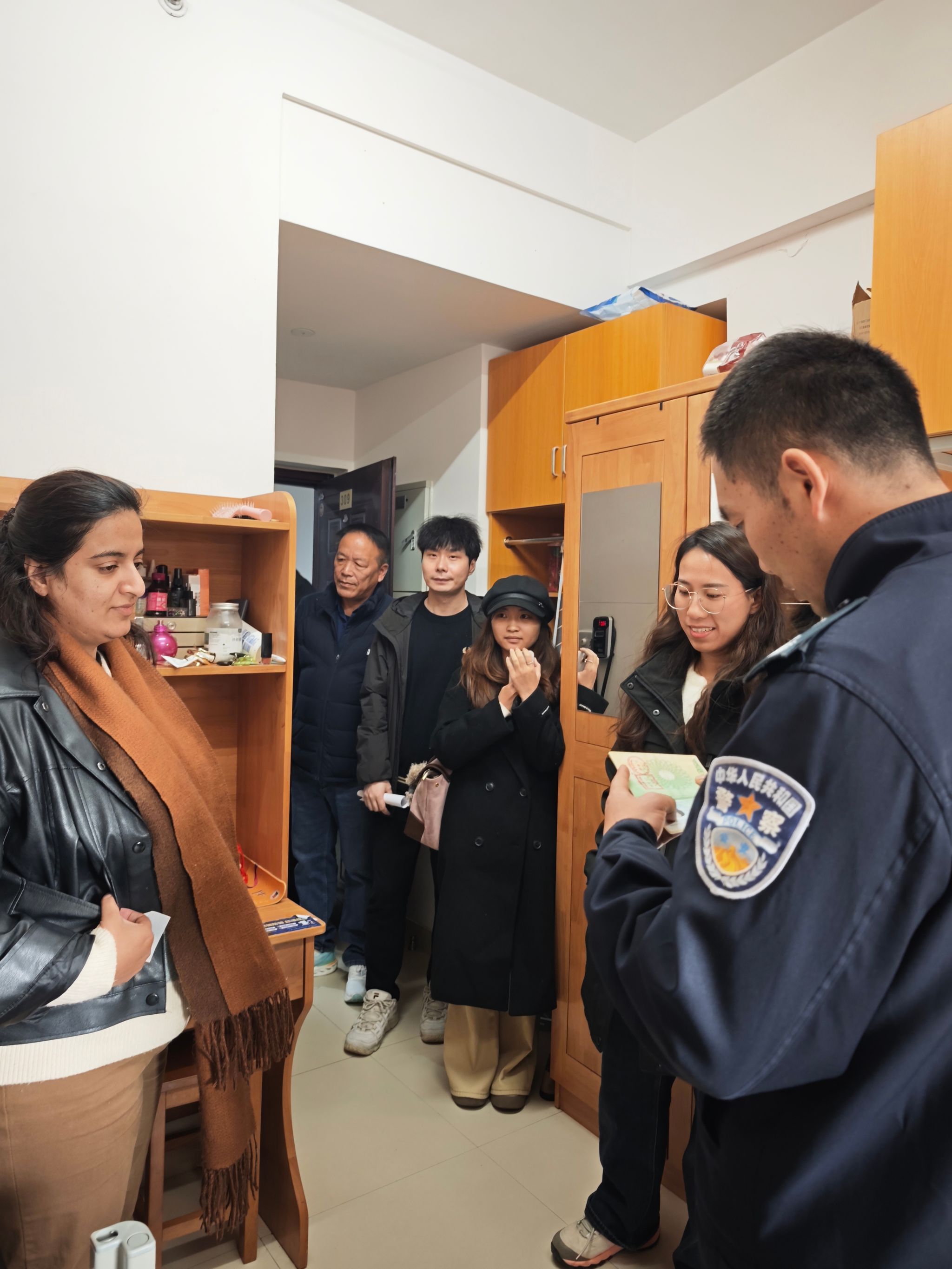 本次联合行动聚焦留学生群体的实际生活与安全需求,围绕多个重点领域展开。走访团队深入学生宿舍,细致检查用电安全,重点排查违规使用大功率电器等隐患,提醒学生注意防火安全。同时,结合期末及节假日特点,老师们与民警向同学们进行了面对面的安全提醒,内容包括严格遵守作息时间、减少晚归、杜绝夜不归宿行为,以及遵守中国法律、抵制“三非”行为、注意交通安全、文明出行。