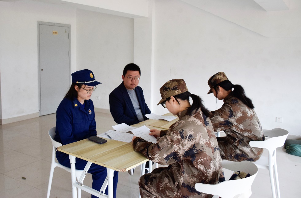 除了激烈的体能测试,选拔仪式还设置了至关重要的面试环节。在这一环节中,消防队员们就消防知识、应急处理能力等方面展开深入提问。同学们以扎实的知识储备和自信的表现,展示了他们在消防领域的专业素养和应对突发情况的能力。