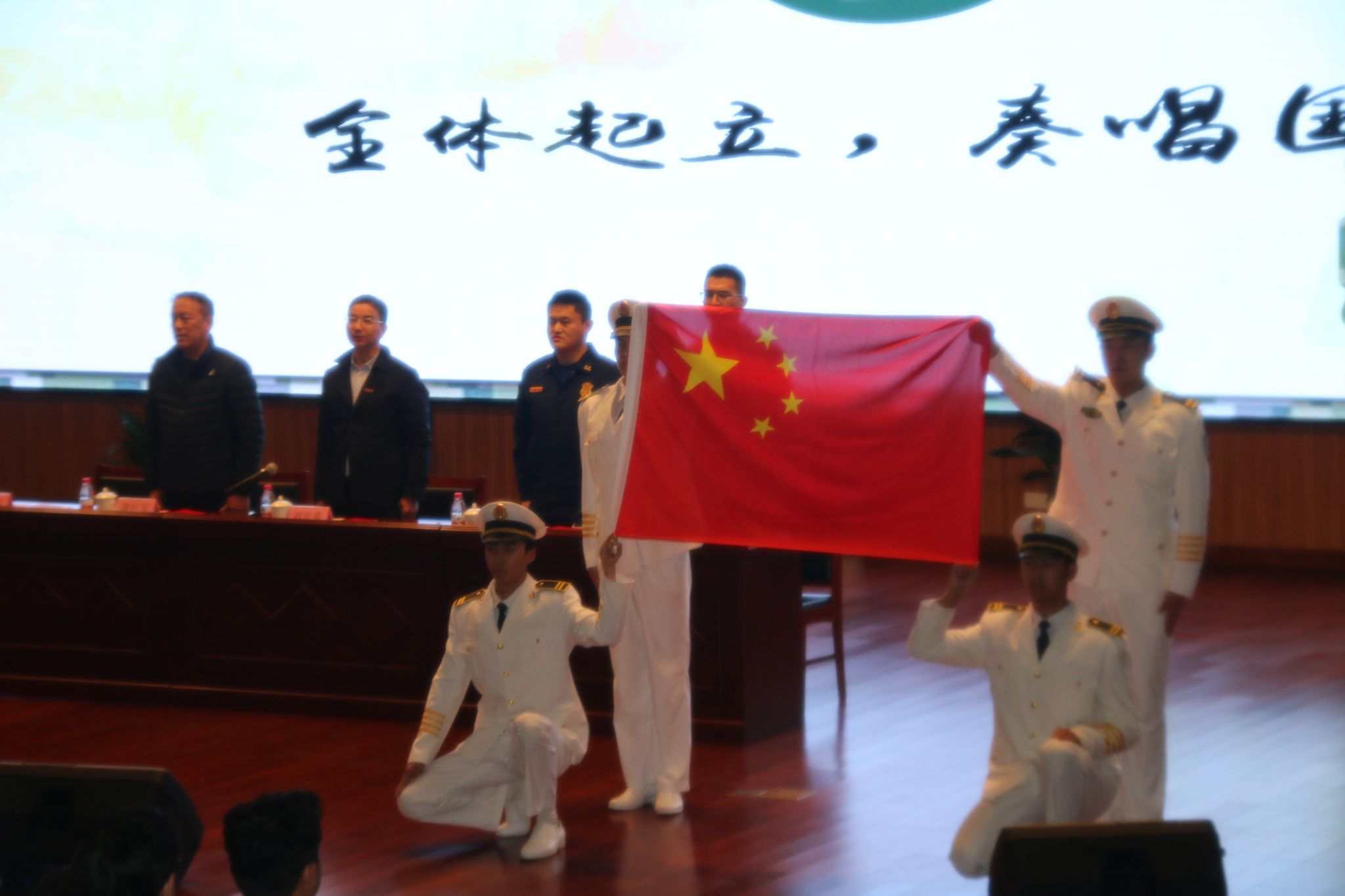 仪式在雄壮的国歌声中拉开序幕。大队指导员详细介绍了本学期训练计划及活动安排,明确职责要求,同时也提到了一日生活制度的规范,早操、请假、上课、晚自习、整理内务等各方面的要求。主席台各位嘉宾向10名“优秀标兵”颁发荣誉证书,希望他们珍惜荣誉、戒骄戒躁、继续发扬优良作风,带领同辈,积极努力,为学院半军管工作添砖加瓦。会上,大队全体成员还进行了集体宣誓,重温半军管誓词。